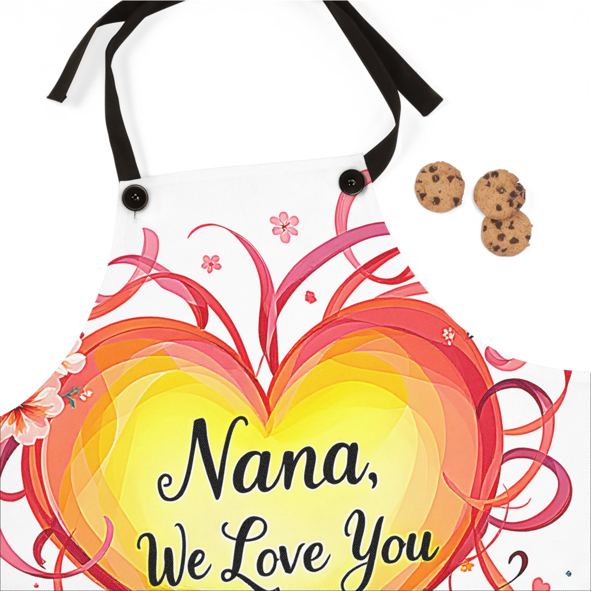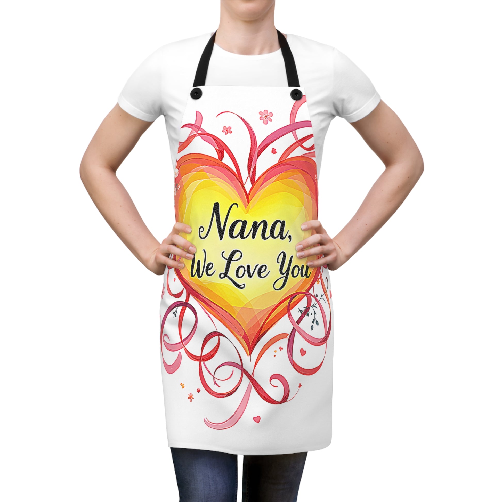 - Celebrate Nana's love with a vibrant heart apron, adorned with intricate floral designs and swirls, perfect for expressing heartfelt appreciation. Ideal for art lovers seeking a unique and meaningful gift.