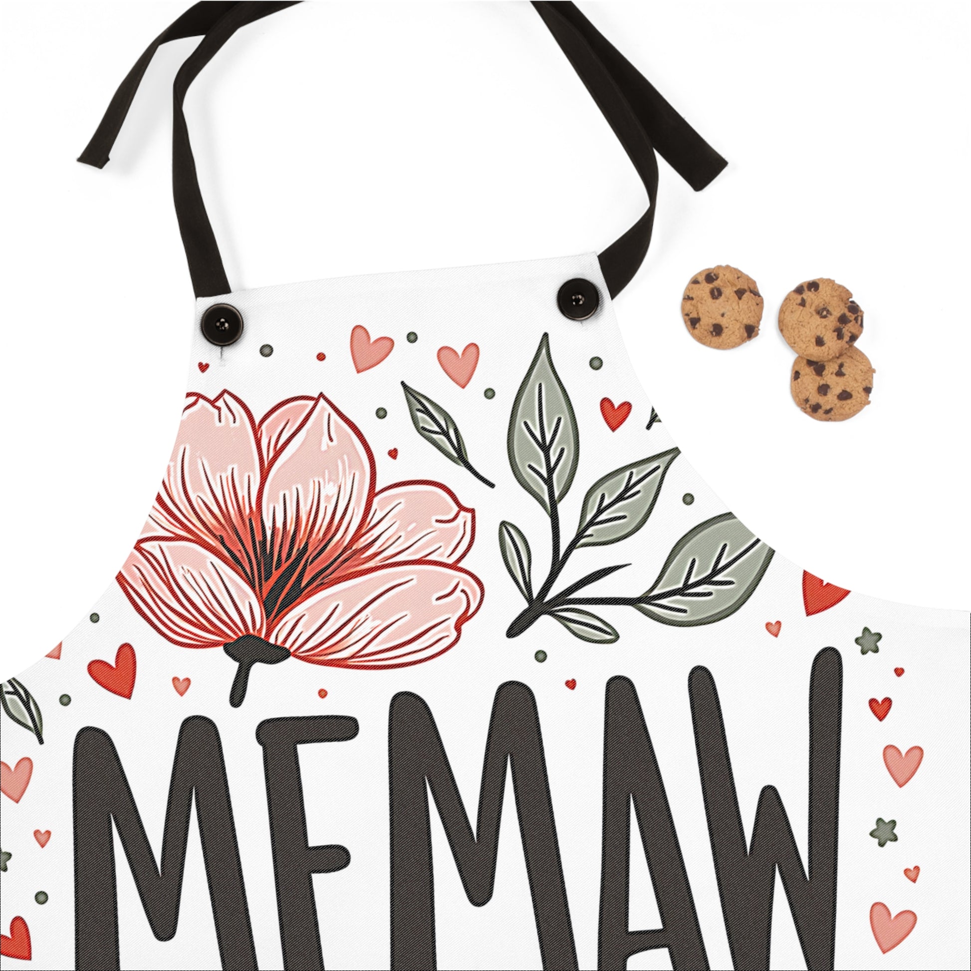 - Celebrate the warmth and love of 'Memaw' with this apron, beautifully adorned with pink flowers, leaves, and heart motifs, perfect for art lovers seeking a heartfelt kitchen accessory.