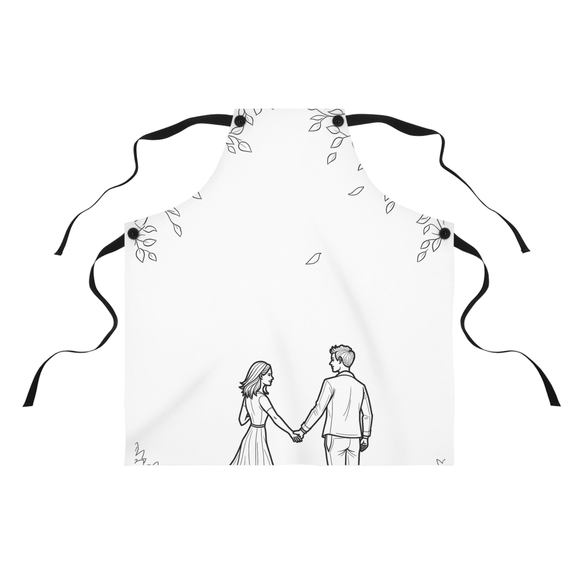 - Celebrate love and nature with our apron featuring a serene couple under lush trees, perfect for art enthusiasts who cherish romantic and natural themes.