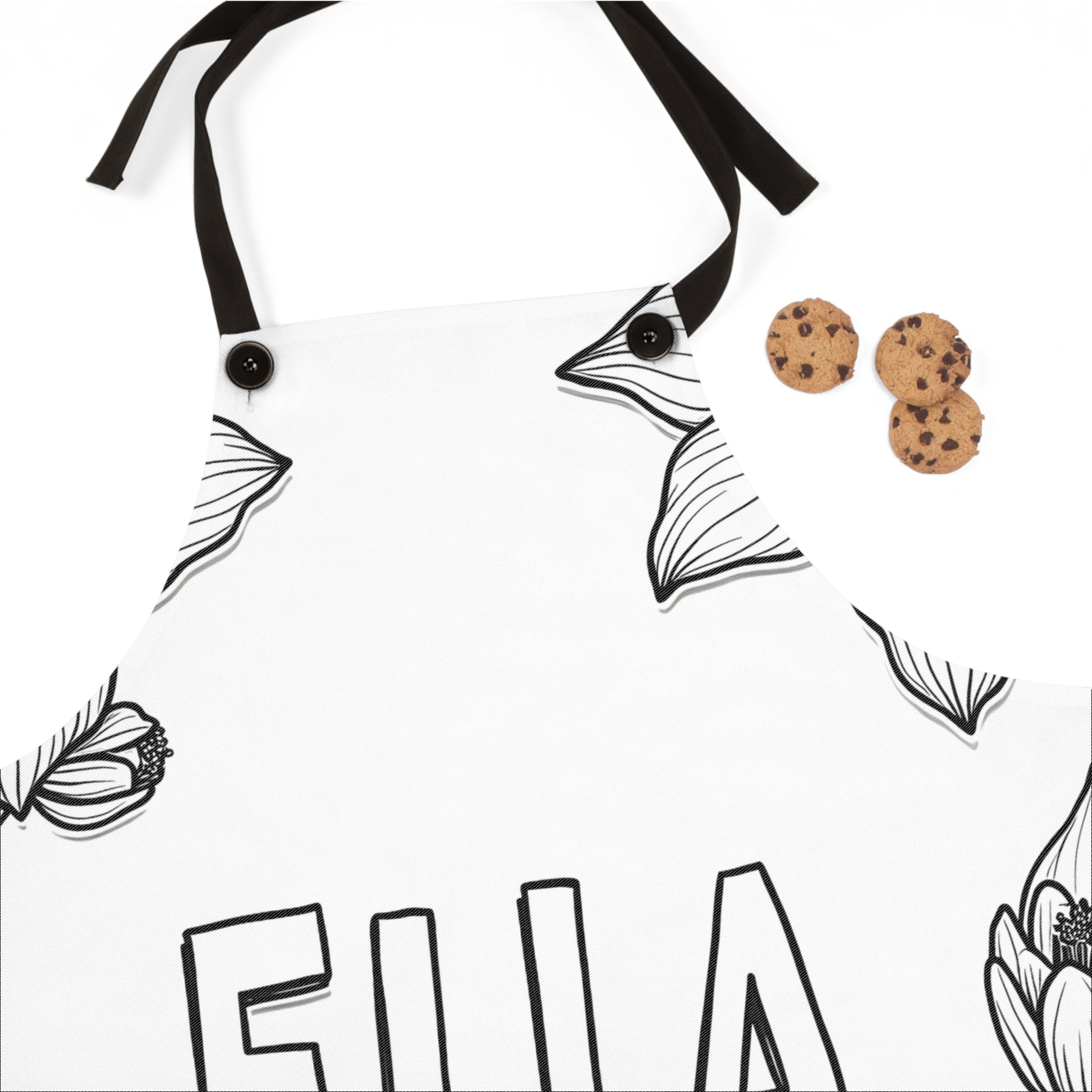 - Celebrate creativity with our 'ELLA' apron, showcasing bold floral outlines perfect for art enthusiasts seeking a unique, personalized touch.