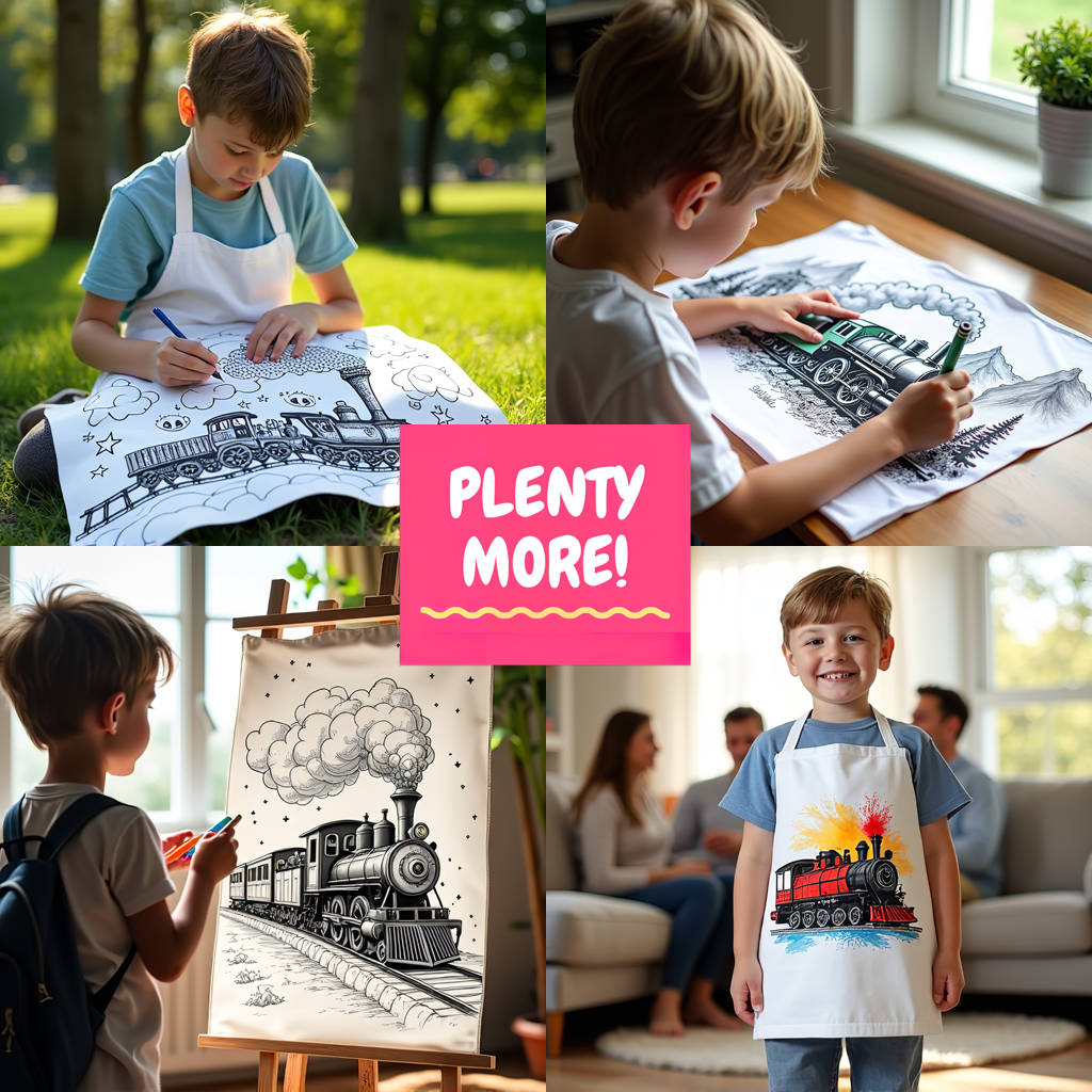 Apron Coloring Kit with 10 Fabric Markers - Steam Train