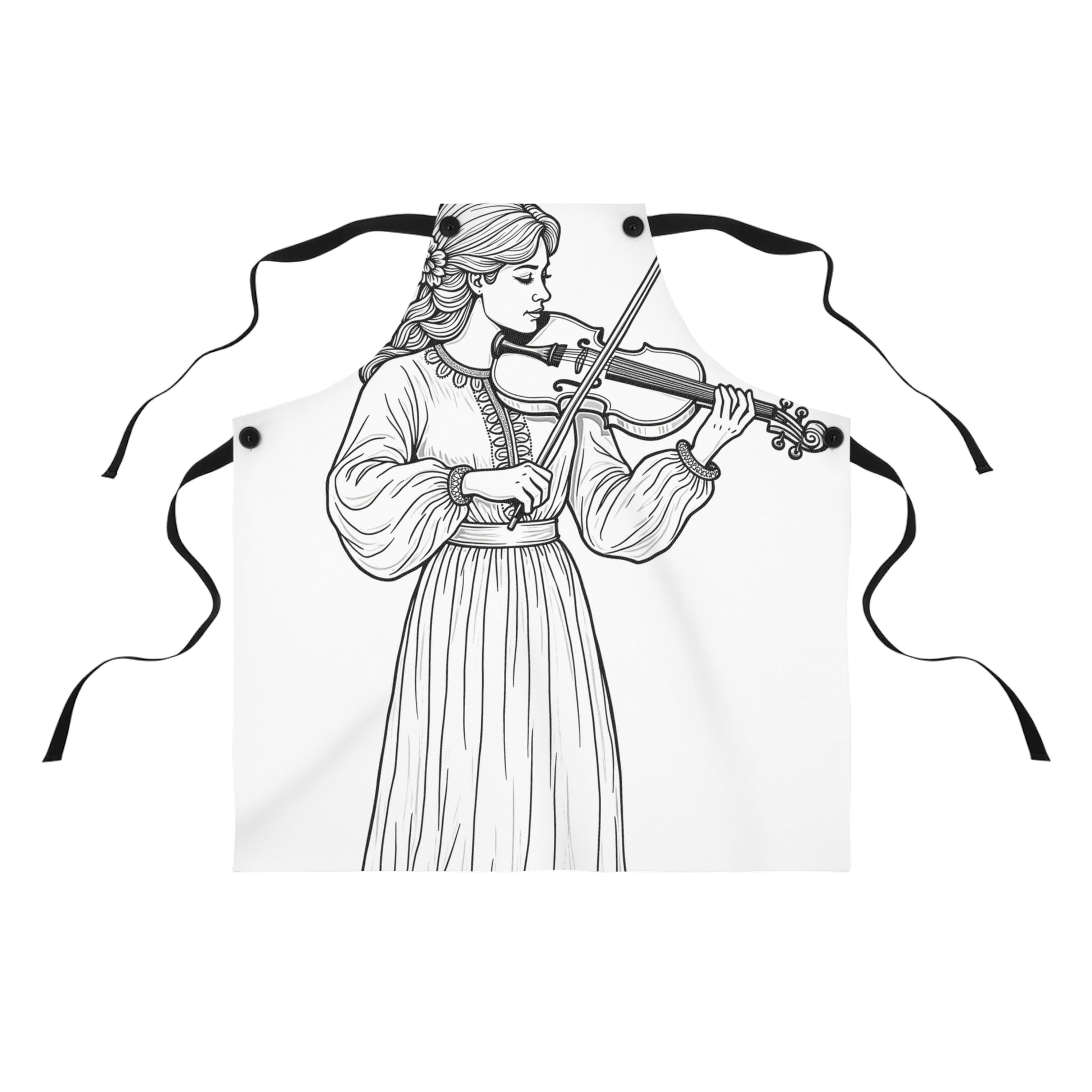 - Embrace the harmony of art and music with our apron, featuring a beautifully illustrated young violinist, perfect for art lovers who appreciate the symphony of creativity.