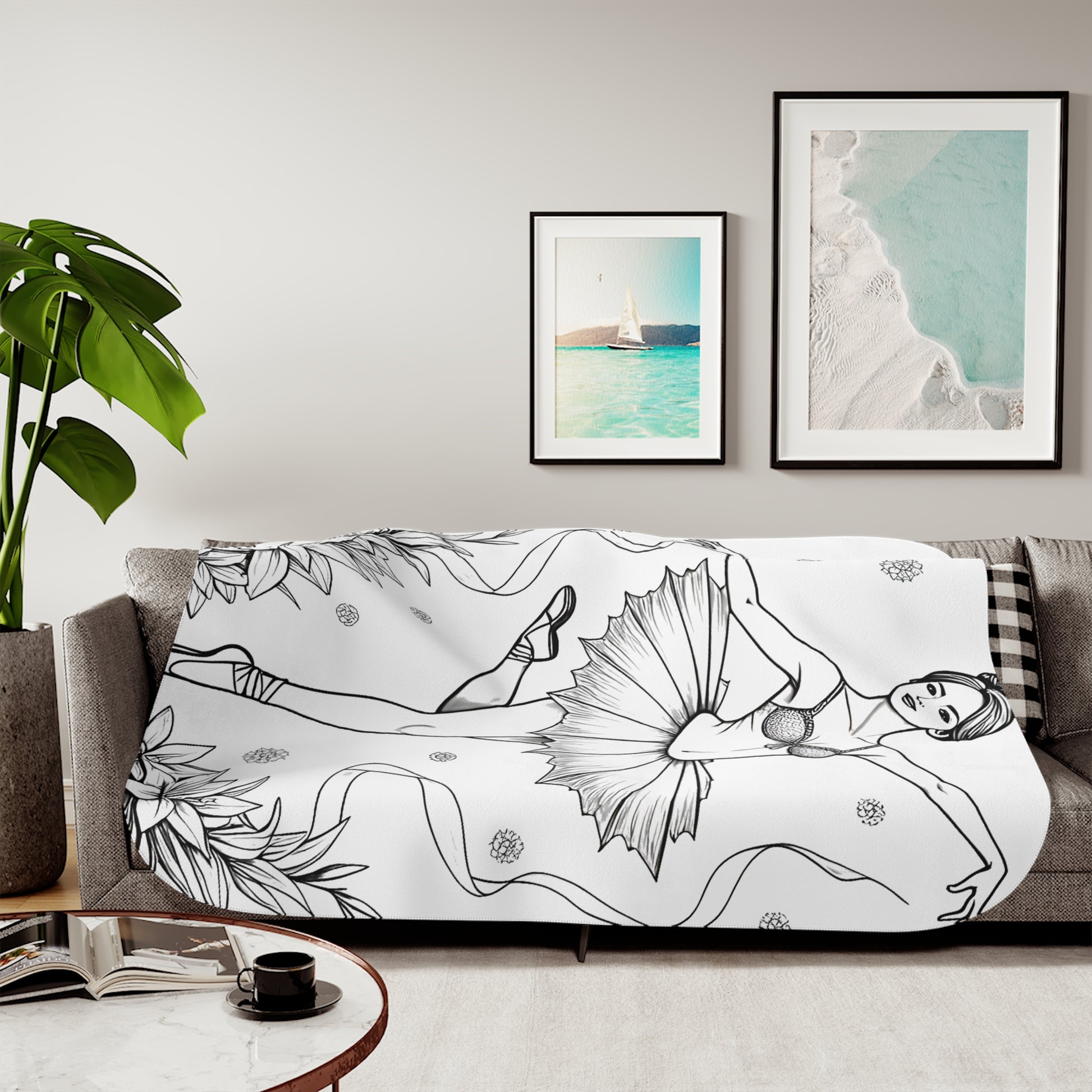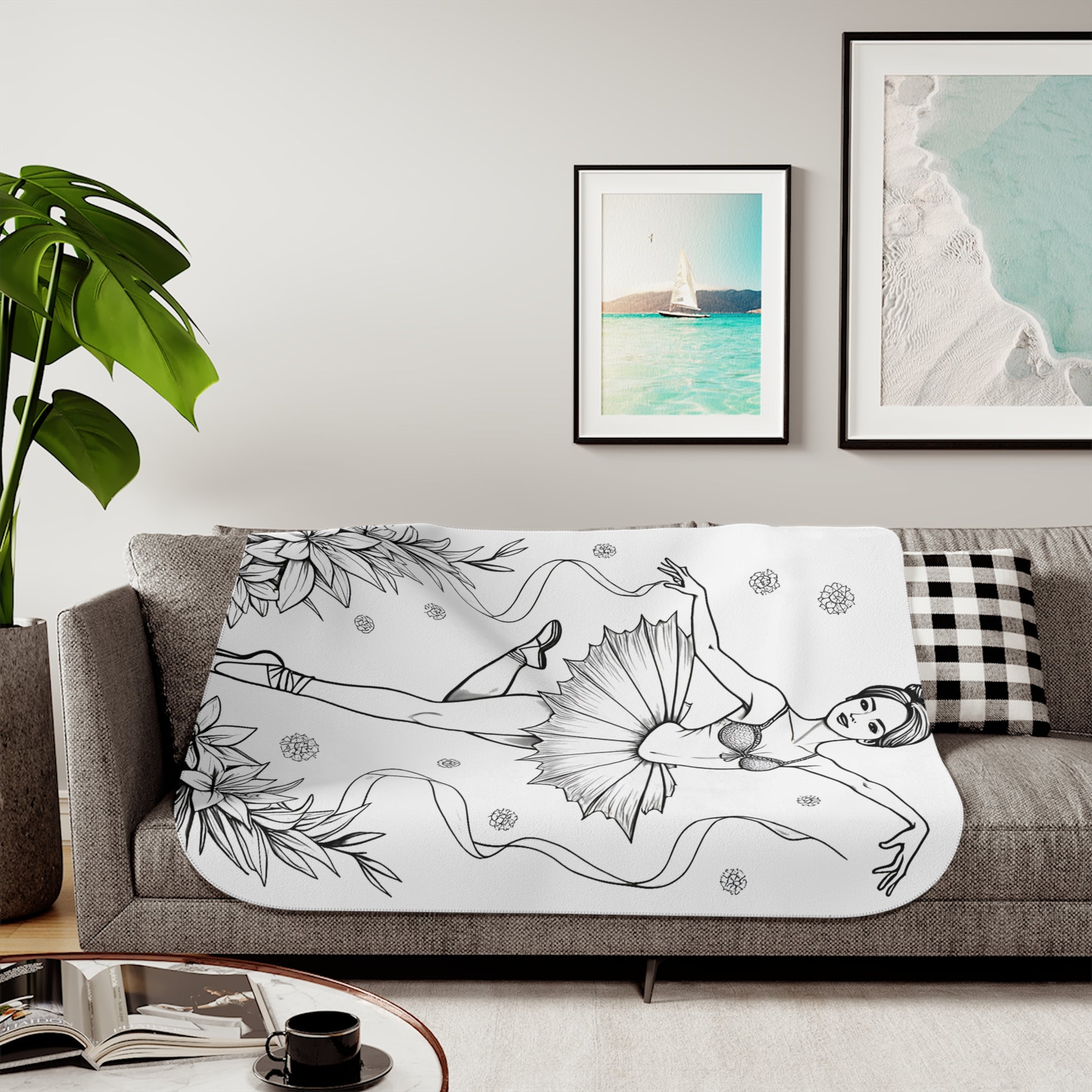 - Experience the elegance and artistry of ballet with our blanket, featuring a graceful ballerina amidst delicate florals and ribbons, perfect for art lovers seeking serenity and beauty in their home decor.
