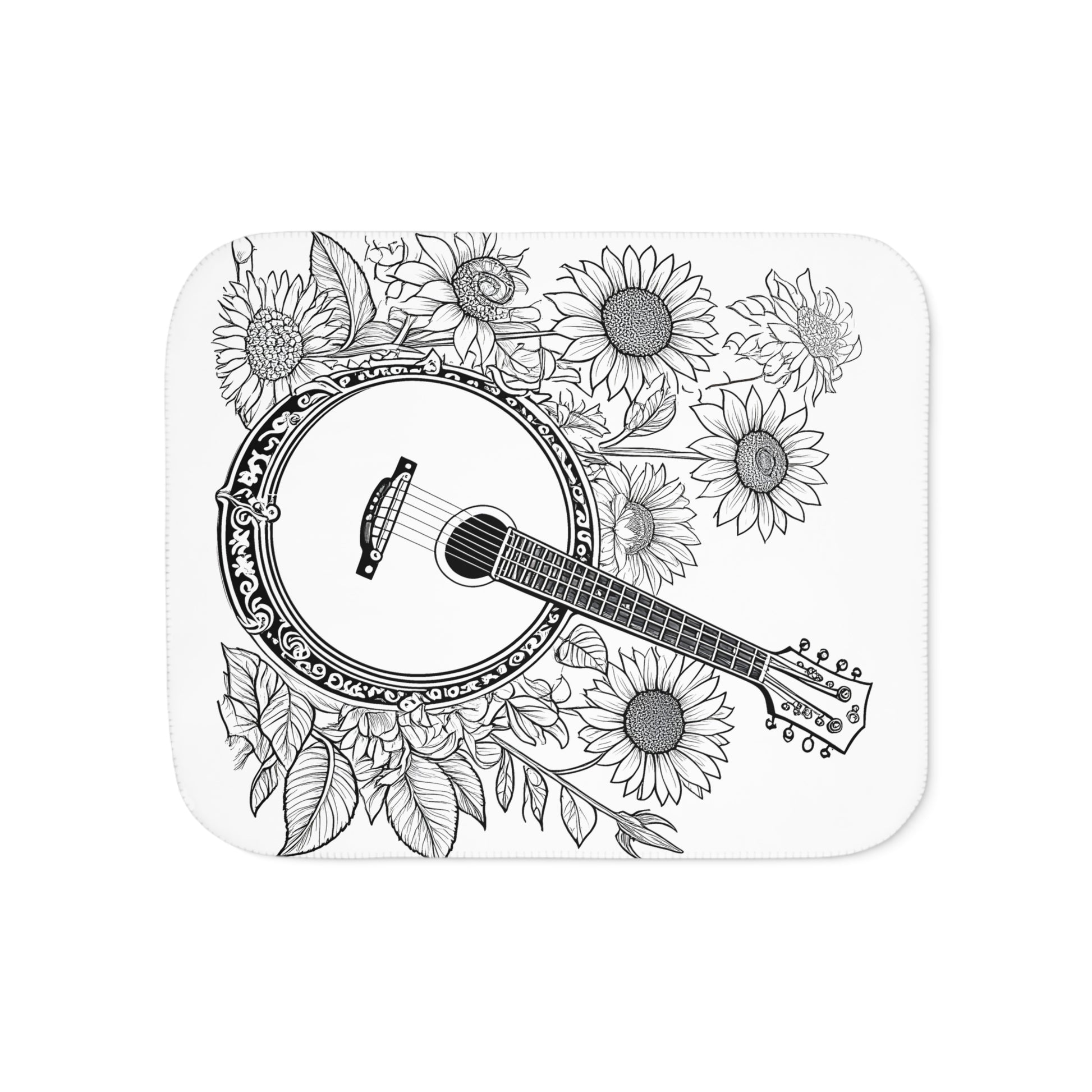 - Embrace the harmony of nature and music with our blanket, inspired by the intricate design of a banjo surrounded by vibrant sunflowers, perfect for art enthusiasts seeking a unique and cozy statement piece.