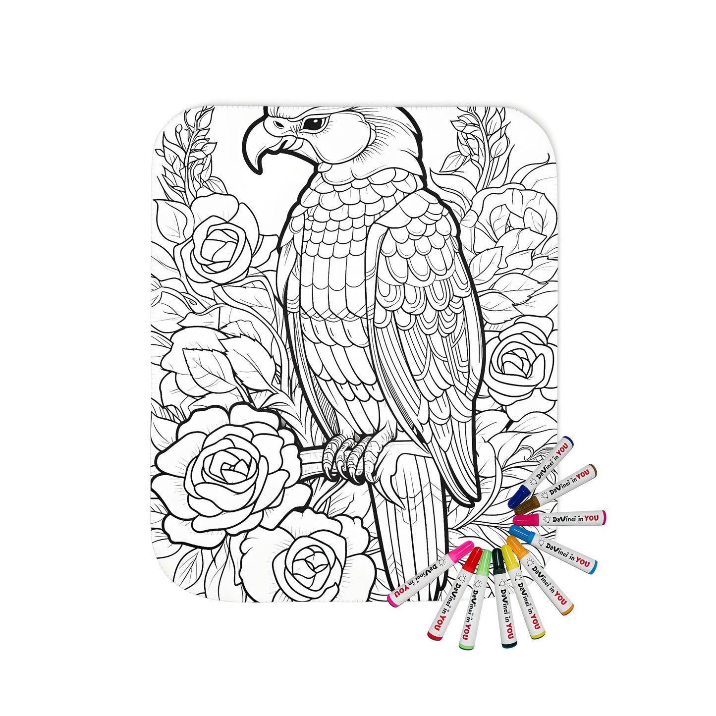 - Elevate your space with an intricately designed eagle and rose motif blanket, blending nature's majesty with artistic elegance, ideal for art enthusiasts seeking unique home decor.