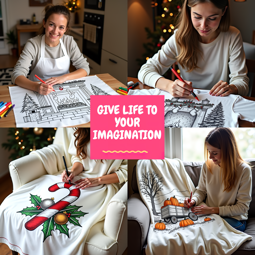 Blanket Coloring Kit with 10 Fabric Markers - Nativity Scene