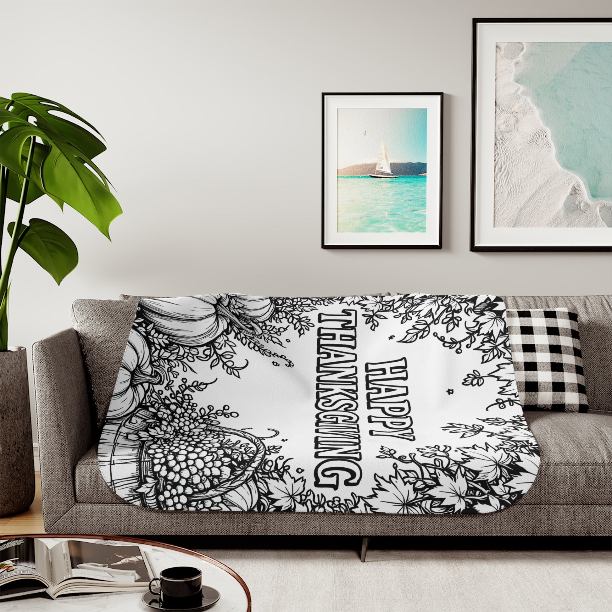 - Celebrate the warmth of Thanksgiving with a cozy blanket inspired by festive autumn motifs, featuring pumpkins, leaves, and a bountiful basket of grapes, perfect for art lovers seeking seasonal charm.
