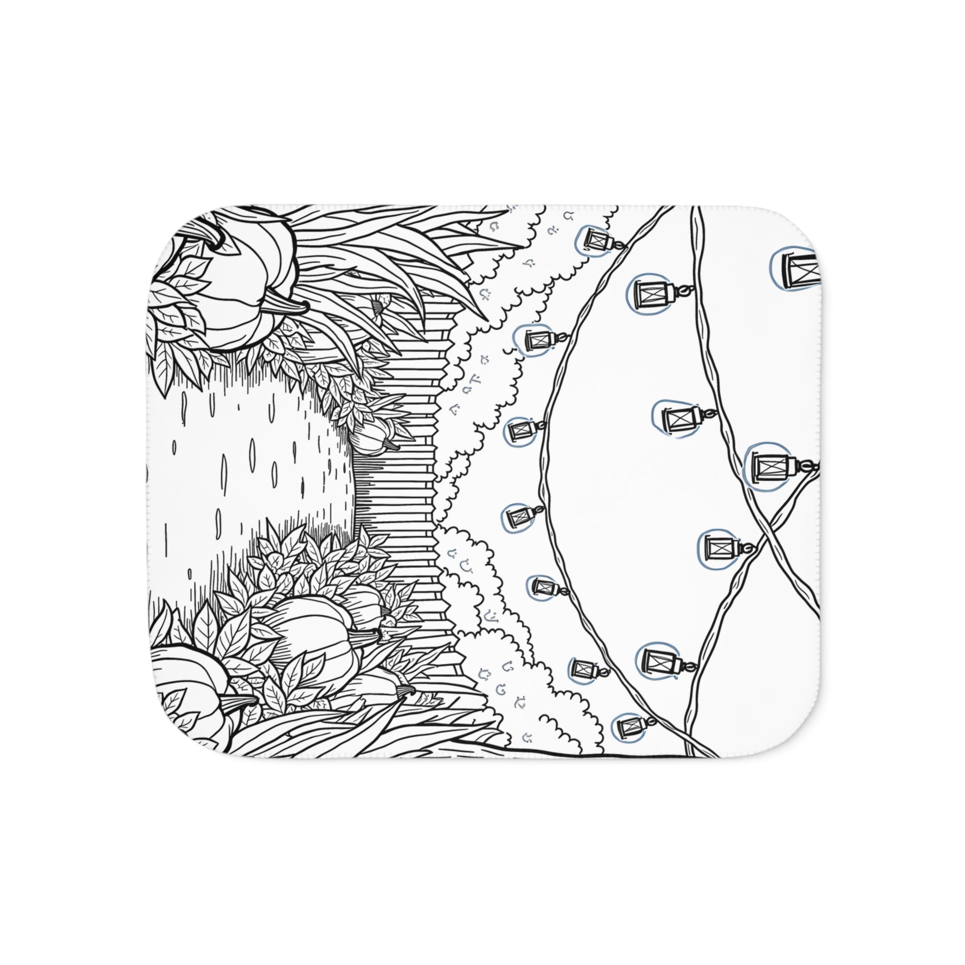 - Transform your space with a cozy blanket inspired by serene garden pathways, featuring autumnal elements like pumpkins and lanterns for a tranquil, nature-infused ambiance.