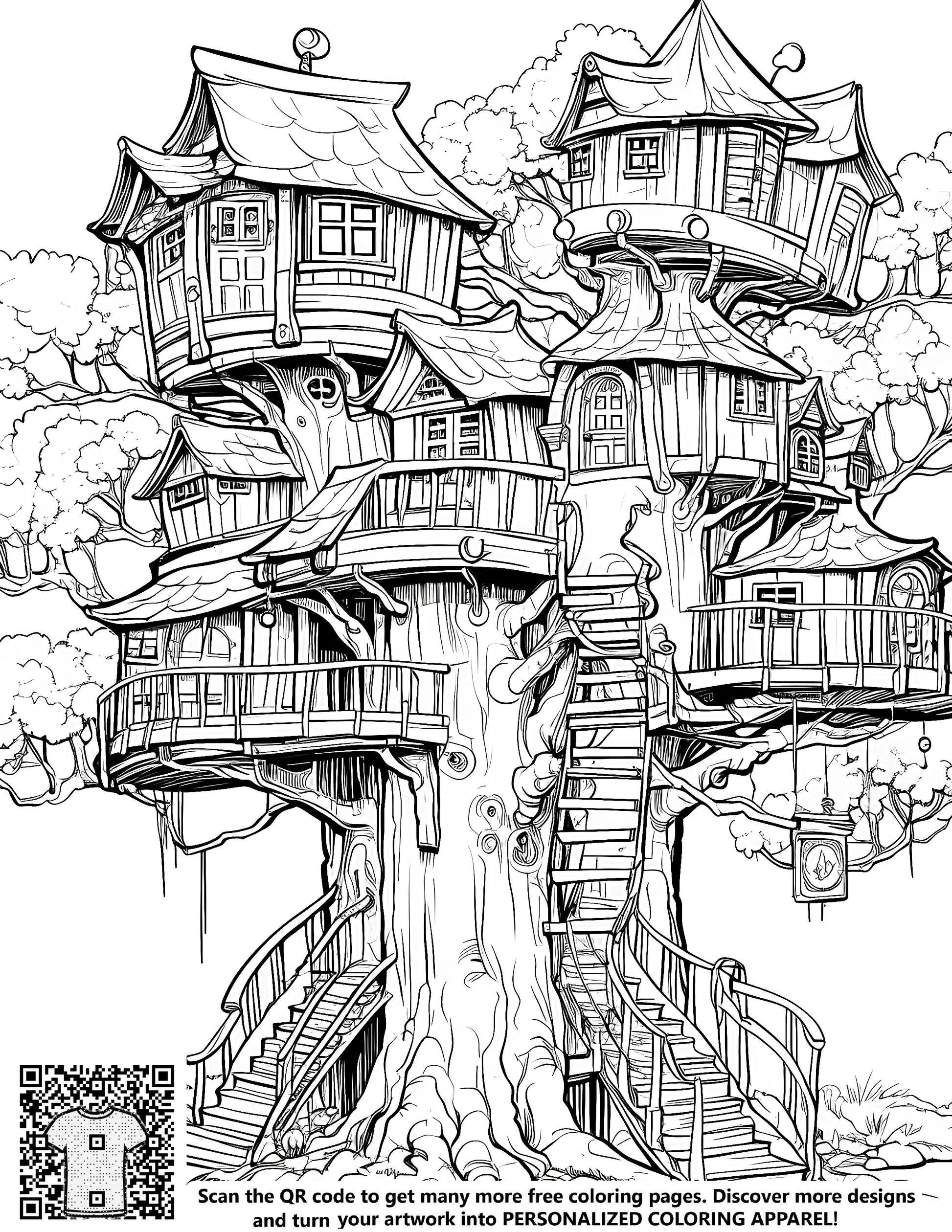 FREE Fantasy Treehouse Coloring Page - Detailed Illustration Download
