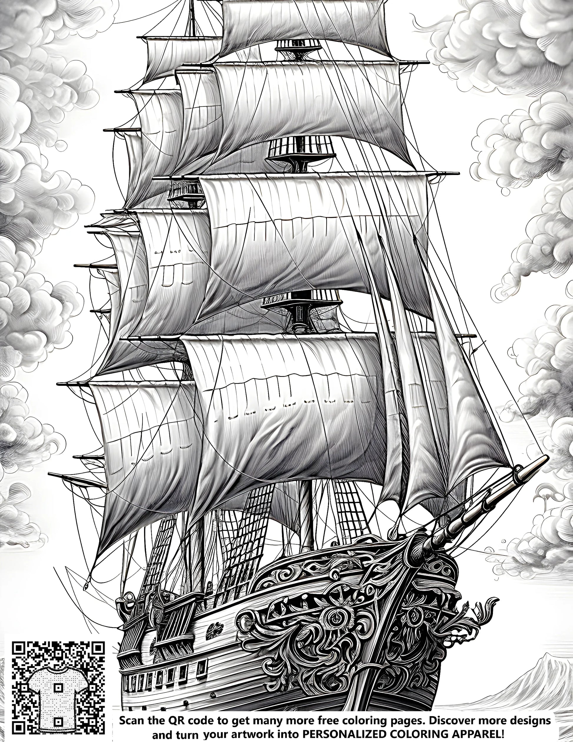FREE Tall Ship Coloring Page - Printable Ocean Adventure Download