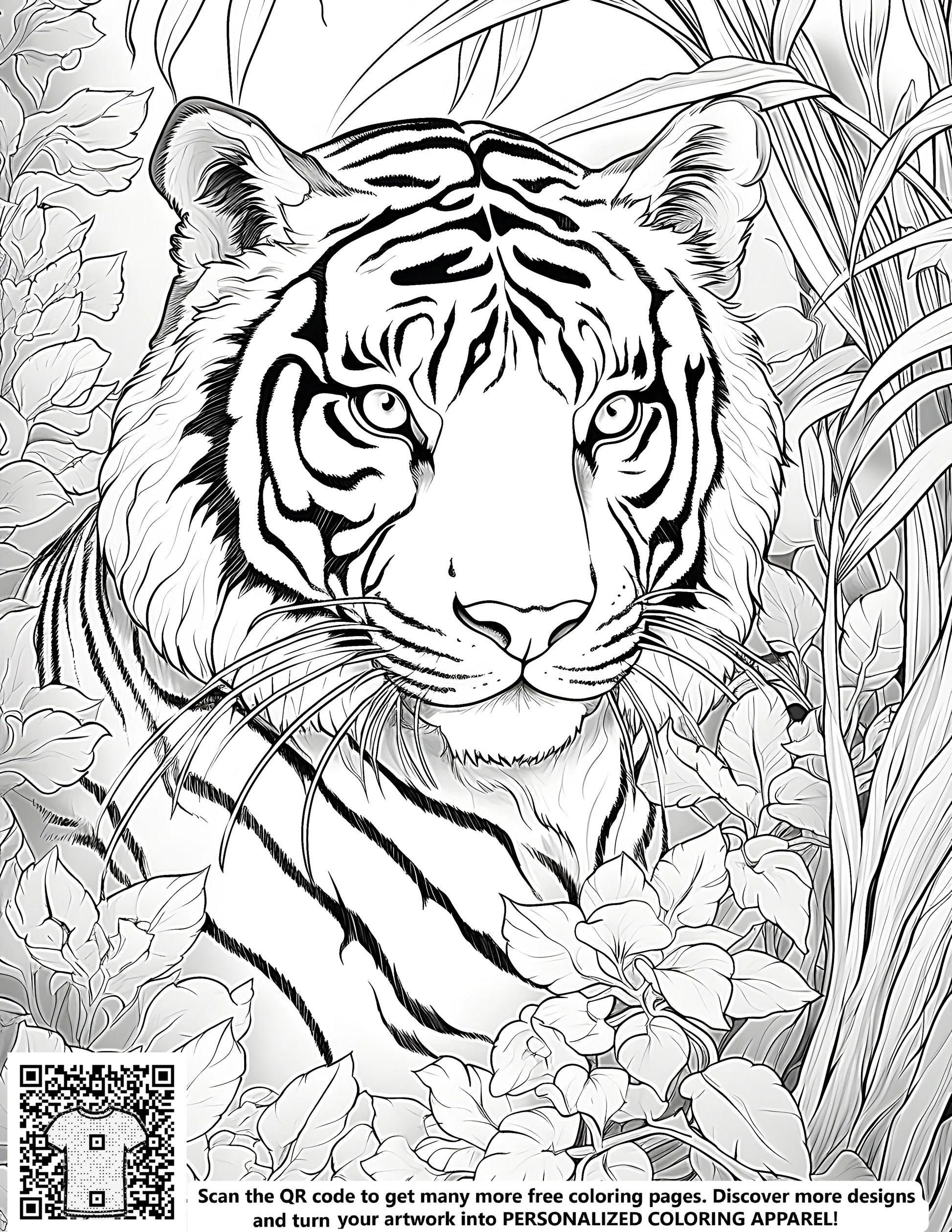 FREE Tiger Jungle Foliage Coloring Page Download