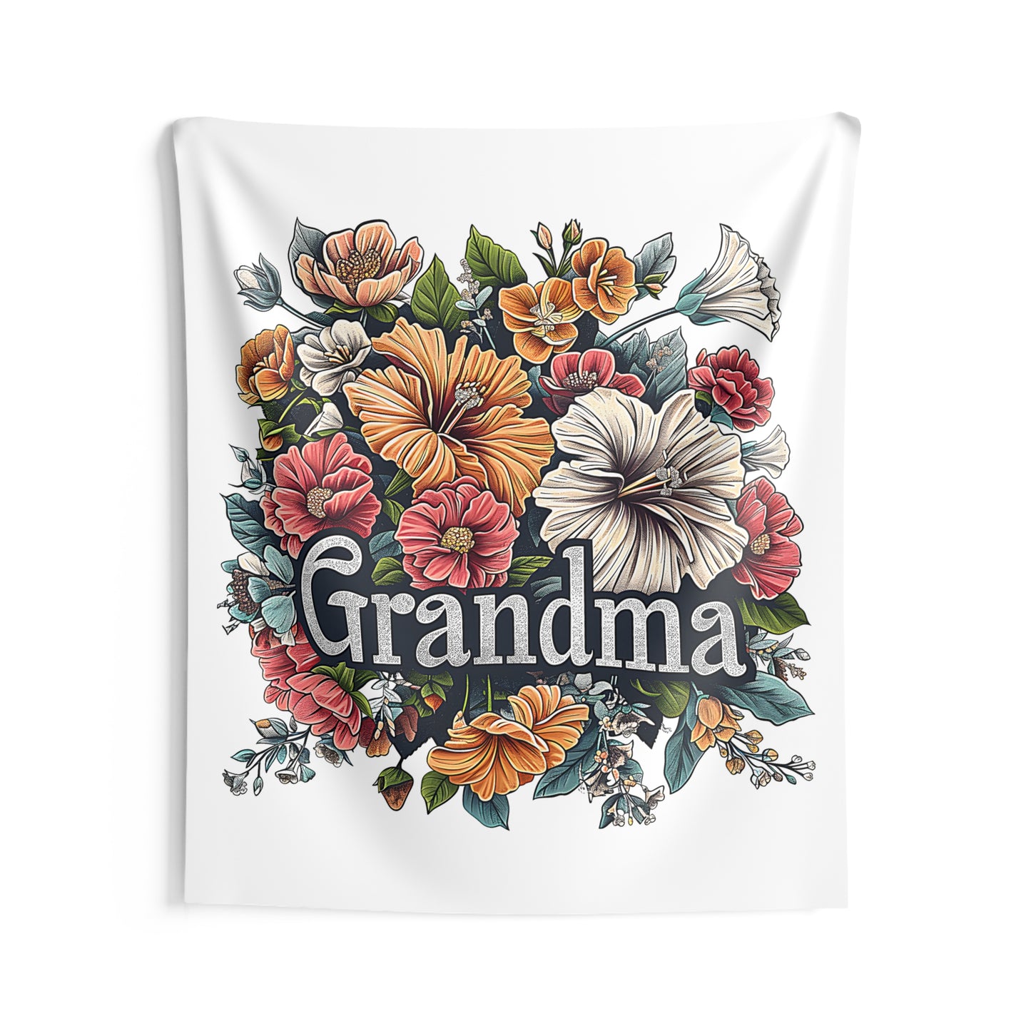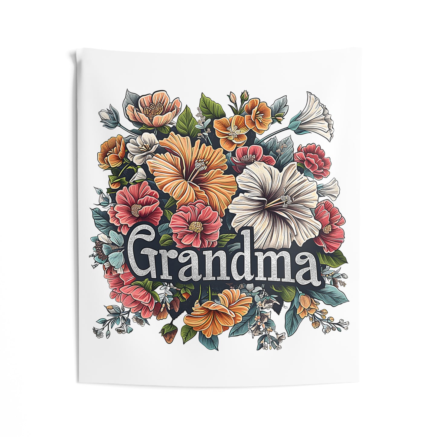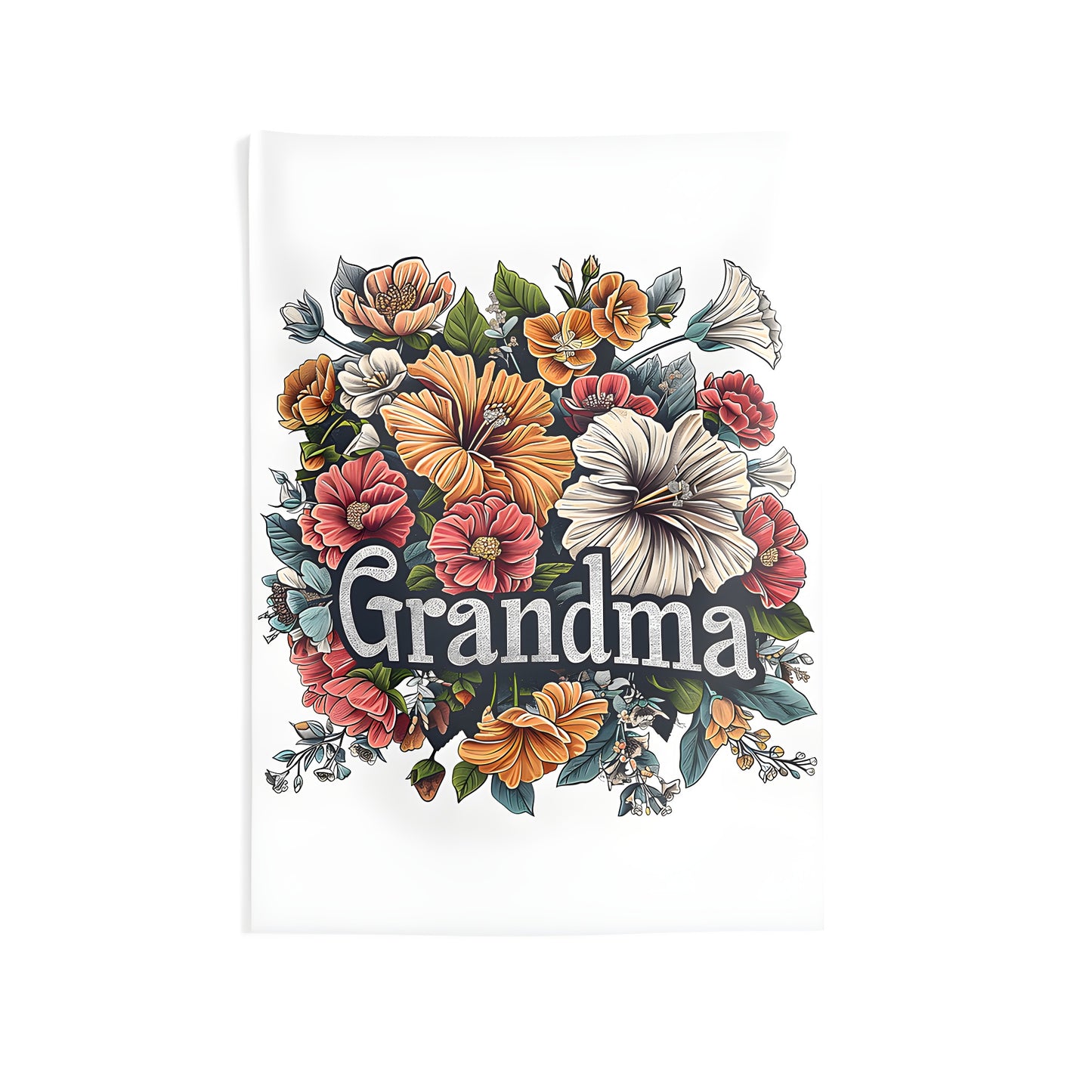 - Celebrate cherished memories with our vibrant "Grandma" floral tapestry, perfect for adding a touch of sentimental elegance to any room.