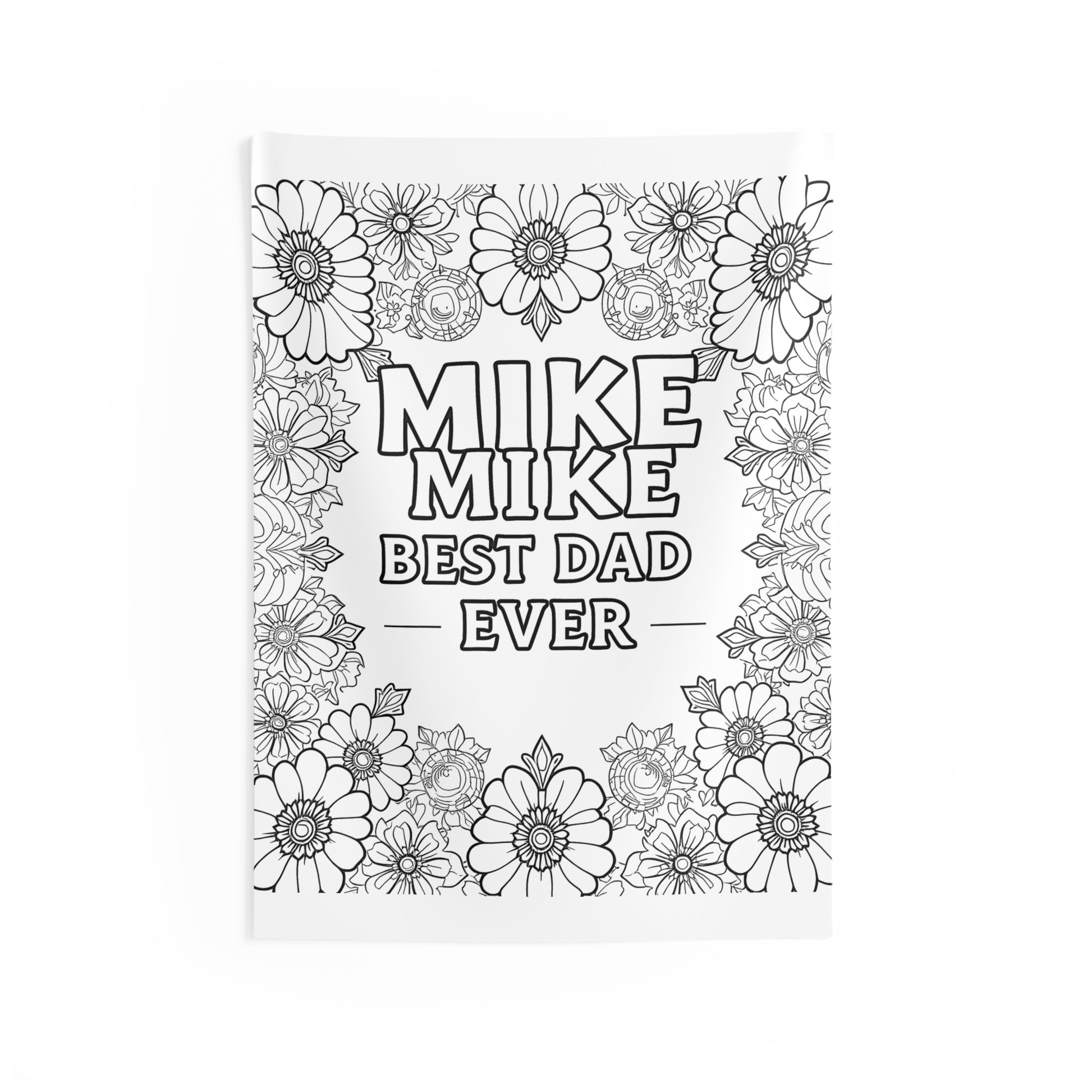 - Celebrate fatherhood with our "MIKE BEST DAD EVER" indoor wall tapestry, featuring intricate floral designs that artfully blend sentiment and style, perfect for adding a personal touch to any space.