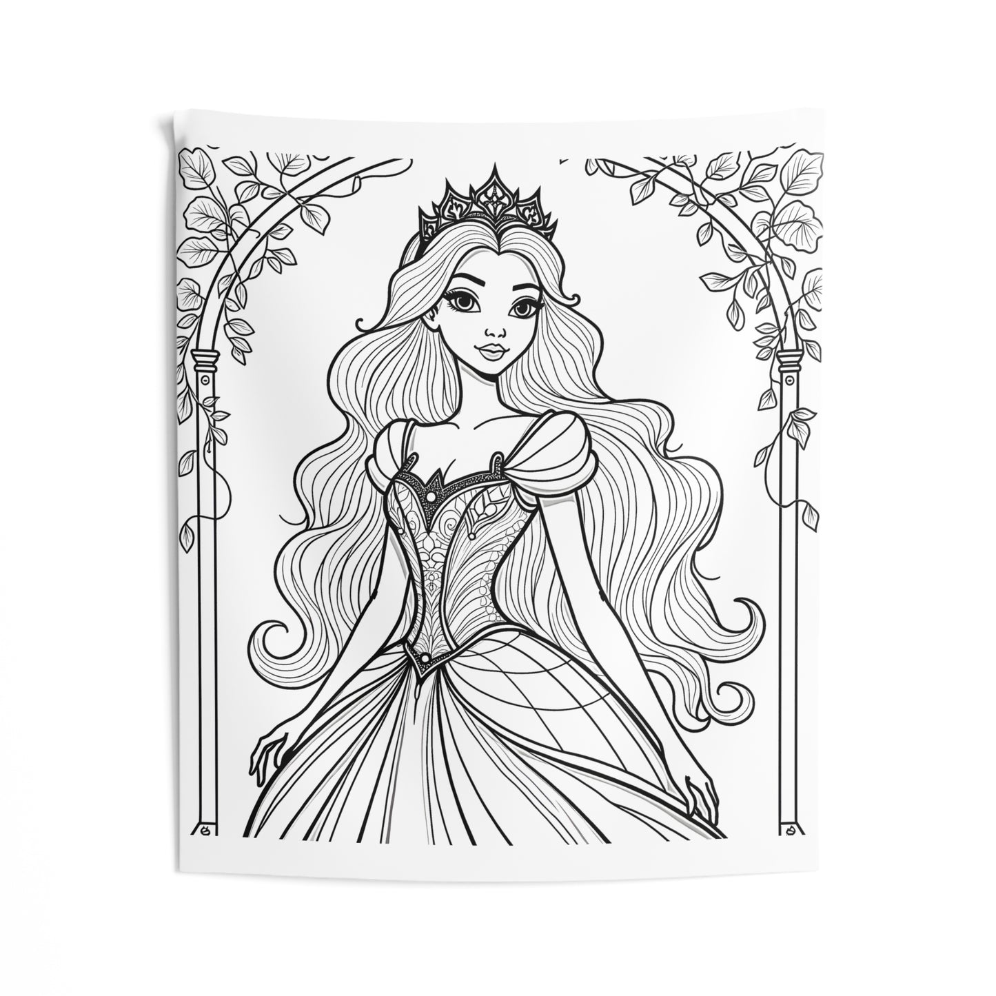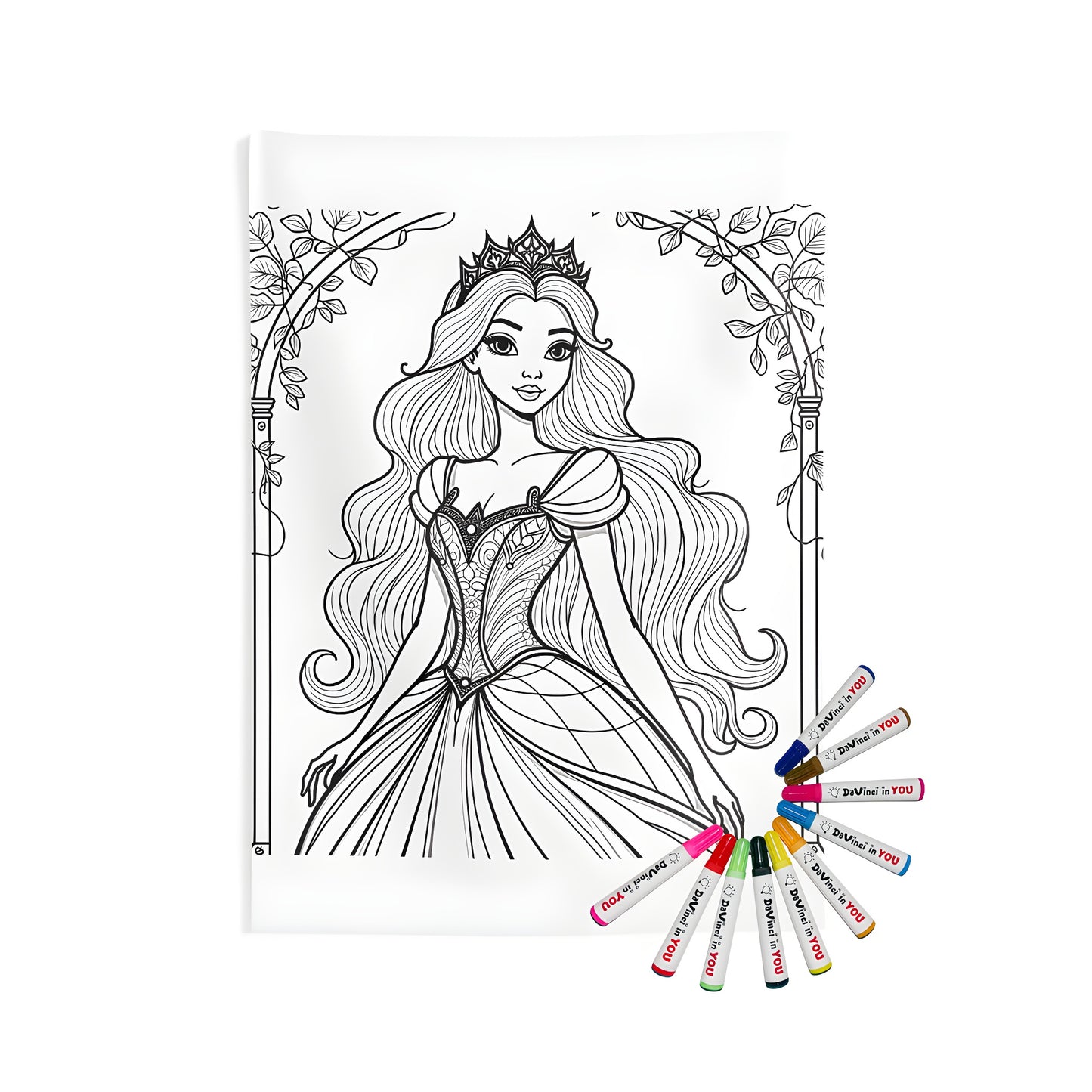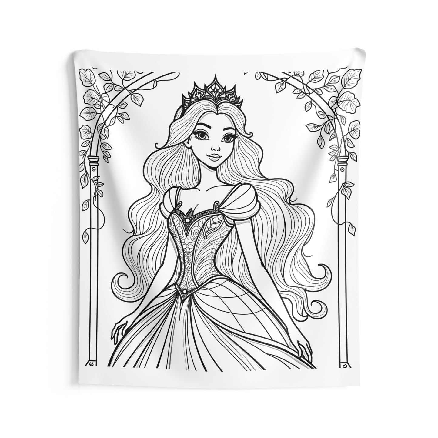 - Transform your space with a tapestry featuring a regal princess under a leafy arch, adding elegance and enchantment to any room.