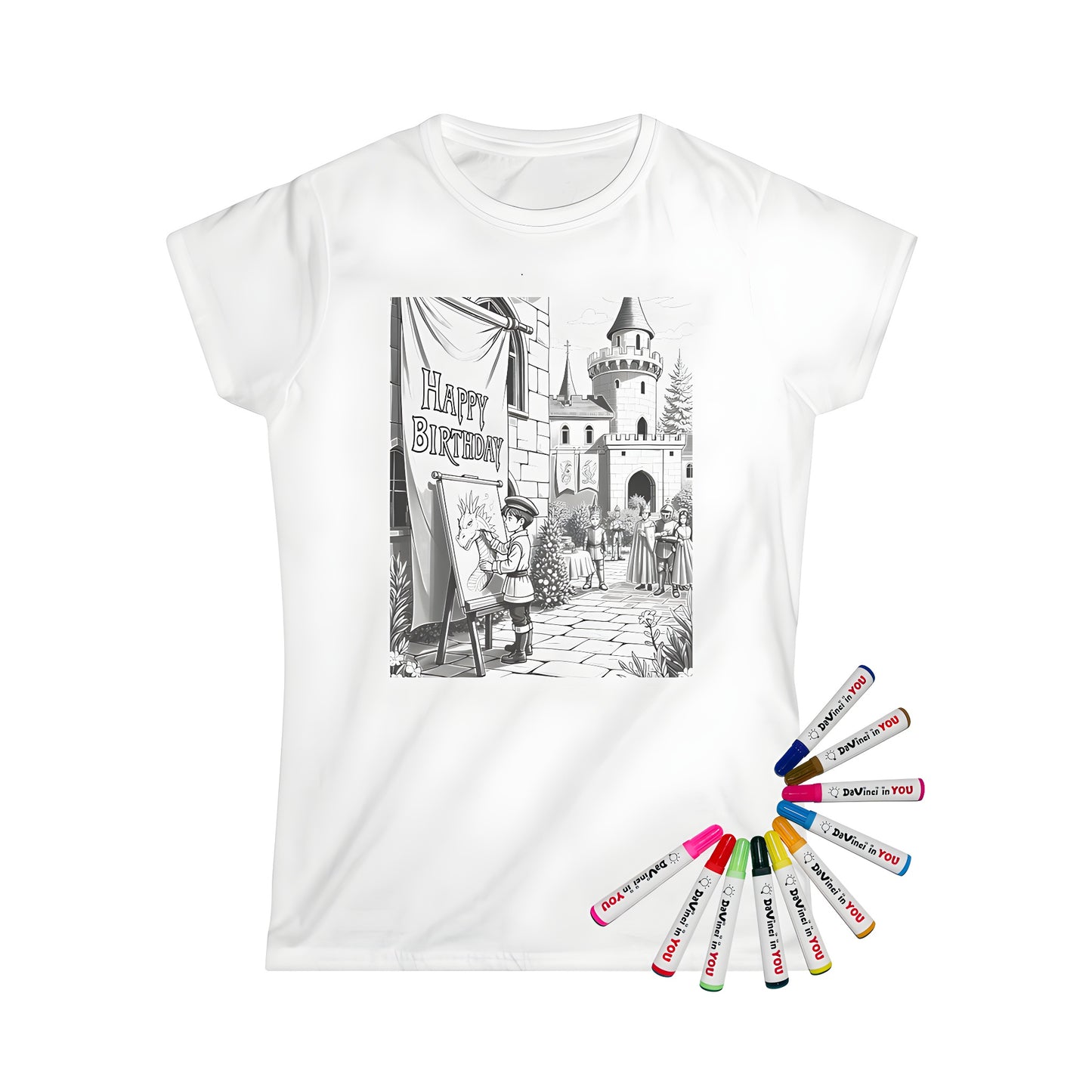 - Embrace the magic of medieval times with a Women's T-Shirt featuring a whimsical castle birthday scene, perfect for art lovers and fantasy enthusiasts alike.